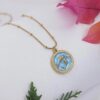 Inspired by the sacred waters and mythology of ancient Greece, the Delphi Dolphin Medallion Necklace represents harmony, freedom, and elegance. Featuring a beautifully detailed gold-tone medallion with twin dolphin motifs set against a serene ocean-blue background, this piece captures the timeless connection between beauty and the sea.